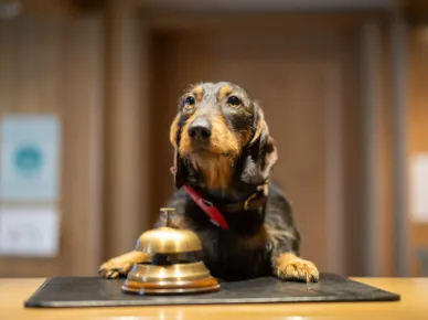 Dein Hund darf dich zu allen Mahlzeiten begleiten – im Frühstücksraum und auf Wunsch auch am Abend